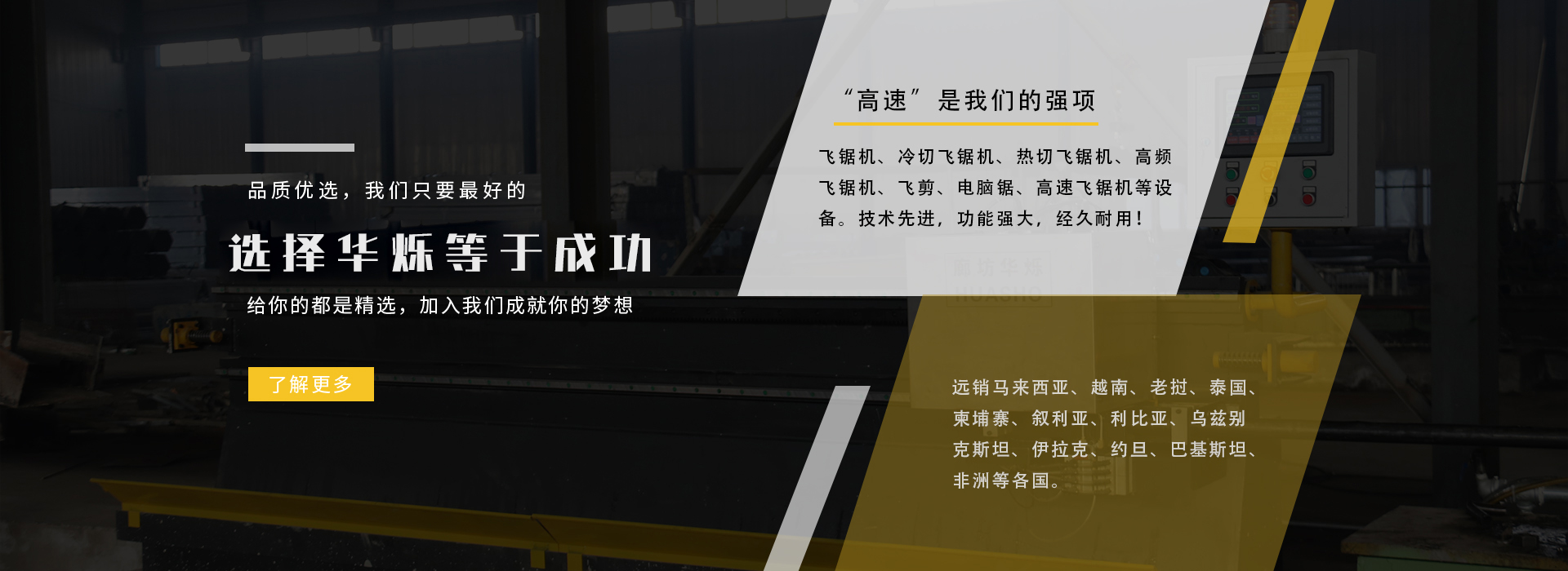 廊坊華爍自動化設備有限公司以誠信交朋友、服務求生存、技術求發(fā)展為宗旨,多年來專注研制、生產(chǎn)、銷售高頻焊管生產(chǎn)線輔機——數(shù)控高頻冷切飛鋸機為主線,為國內外客戶提供高品質的需求產(chǎn)品。如:飛鋸機、冷切飛鋸機、熱切飛鋸機、高頻飛鋸機、飛剪、電腦鋸、高速飛鋸機等設備。 廊坊華爍超過多年的技術經(jīng)驗和研發(fā)能量累積,有強大的系統(tǒng)集成能力,專門為用戶提供量身定制的控制方案,并承攬依用戶需求來開發(fā)設計符合機械要求的新型生產(chǎn)系統(tǒng)。 華爍生產(chǎn)的產(chǎn)品暢銷國內各省,遠銷馬來西亞、越南、老撾、泰國、柬埔寨、敘利亞、利比亞、烏茲別克斯坦、伊拉克、約旦、巴基斯坦、非洲等各國。 華爍擁有售后服務技術人員,具有服務上千家客戶的實戰(zhàn)經(jīng)驗,可提供視頻指導或現(xiàn)場技術安裝指導...